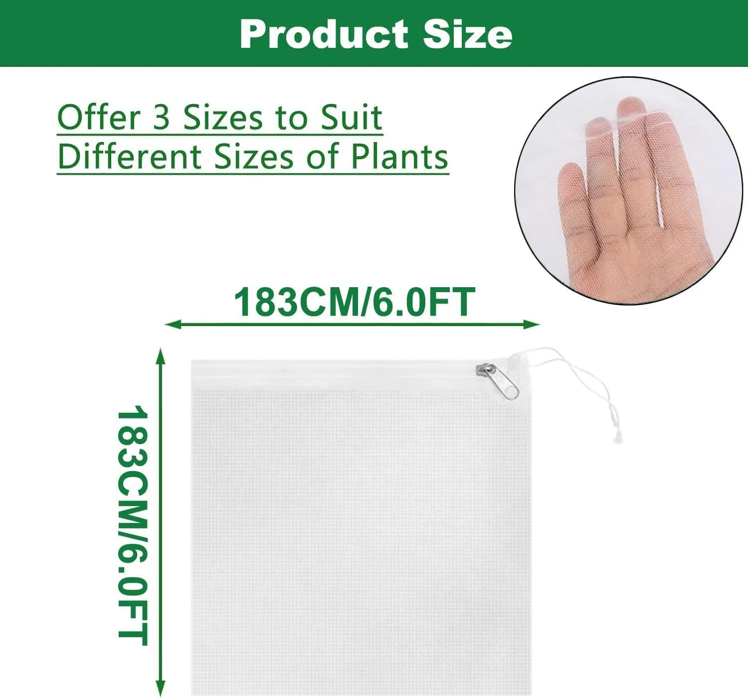 كيس شبكي كبير جدًا لأشجار الفاكهة بطول 1.8 متر - غطاء مزود بسحاب ورباط لحماية النباتات من الحشرات والطيور