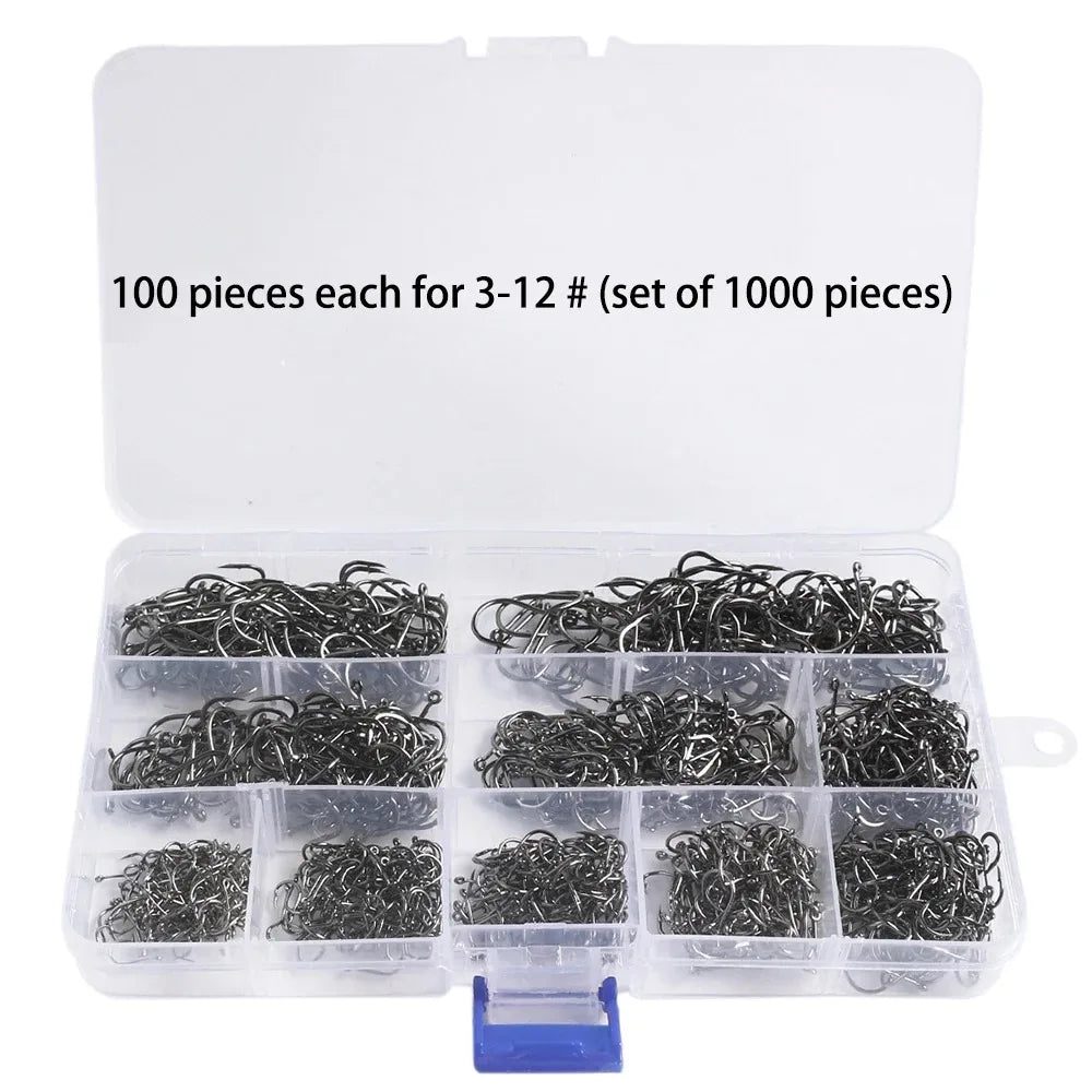 1000 قطعة من خطافات الصيد ذات الأشواك المصنوعة من الفولاذ الكربوني العالي - مجموعة خطافات حادة ومتينة لصيد الأسماك من الصخور ومعدات الصيد