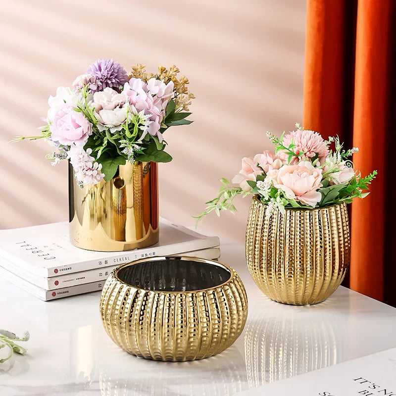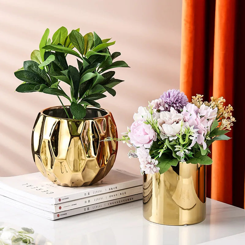 وعاء زهور سيراميكي نورديك قطعة واحدة - وعاء زهور هندسي للمكتب أو الشرفة أو طاولة القهوة