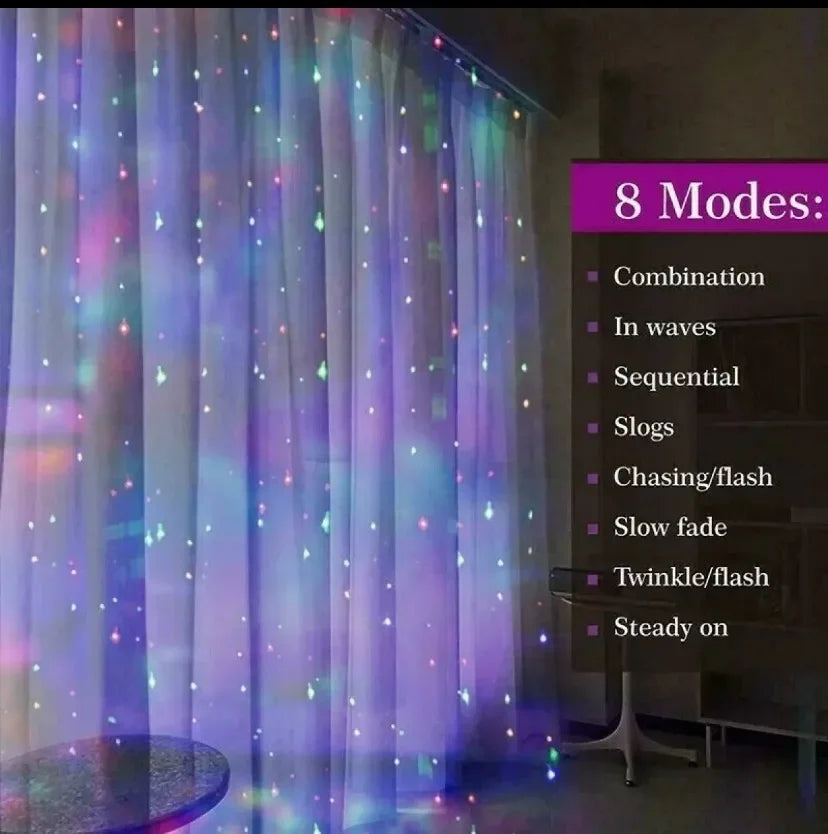 أضواء سلسلة ستائر LED بطول 3 أمتار، أضواء زينة عيد الميلاد، أضواء متدلية على شكل جليد، مثالية لحفلات الزفاف وتزيين المنزل والحديقة