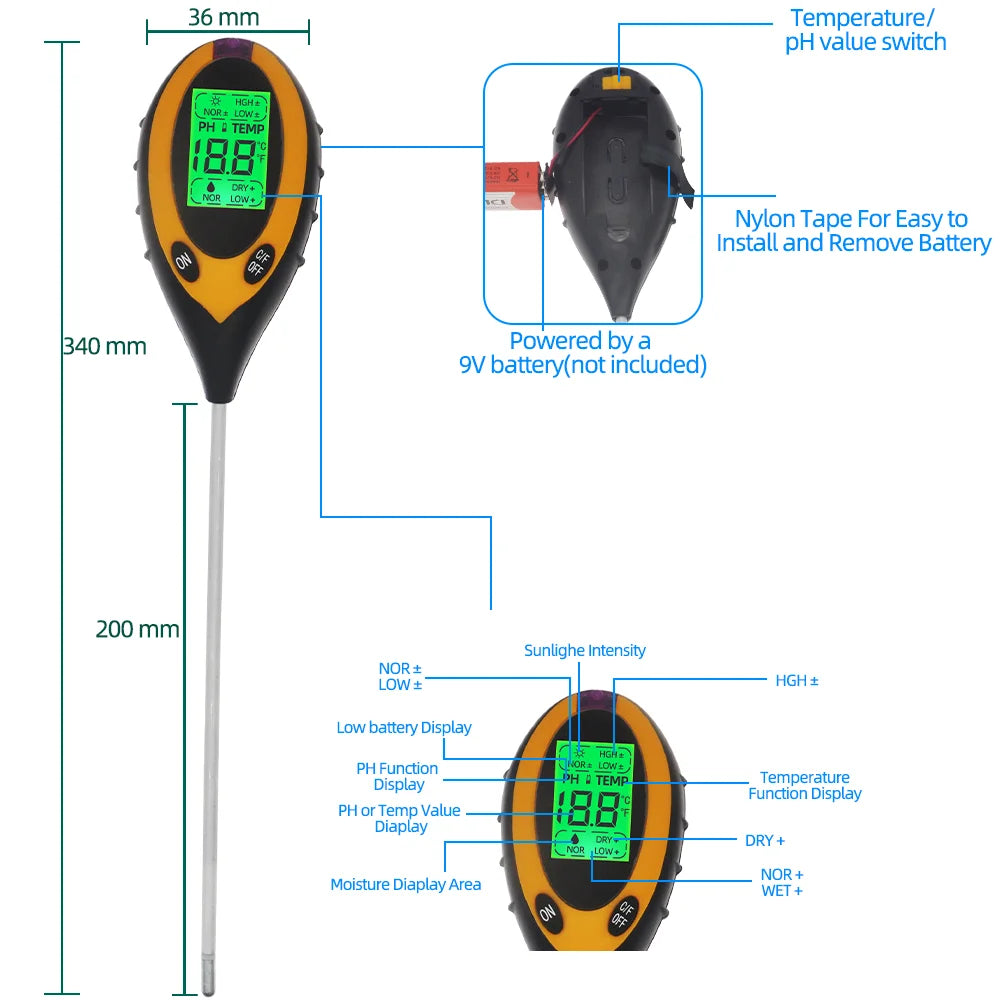 حسّن ظروف التربة لديك لتحسين صحة النباتات باستخدام هذا جهاز اختبار التربة متعدد الوظائف ، الحل الشامل للبستانيين والمزارعين الجادين.