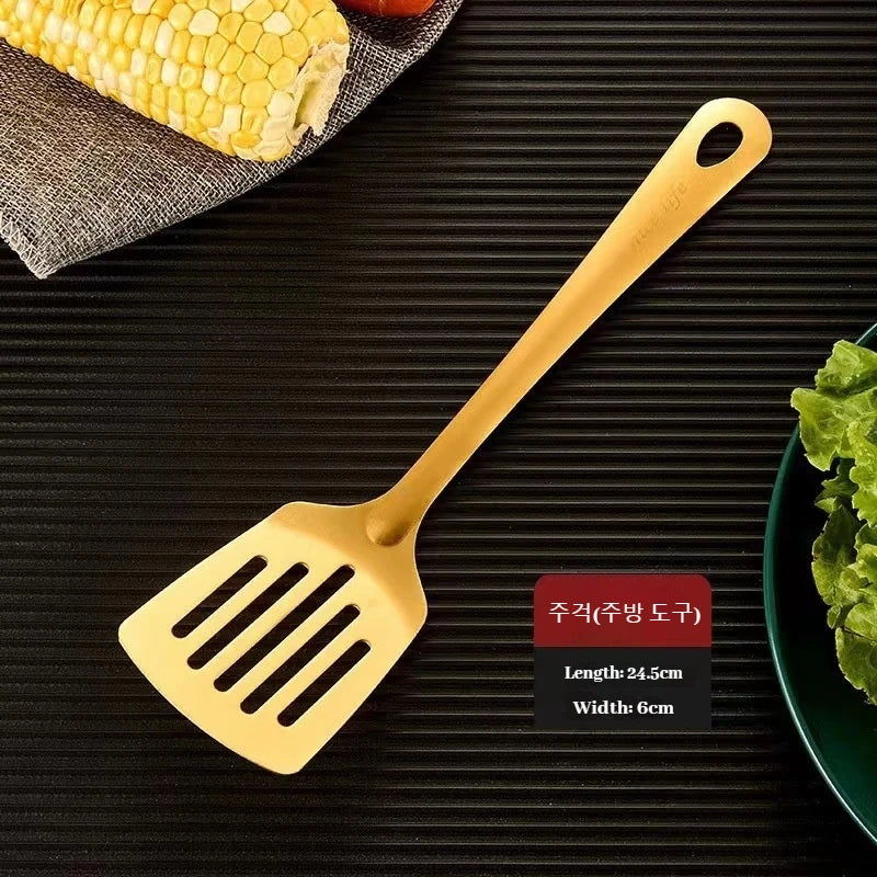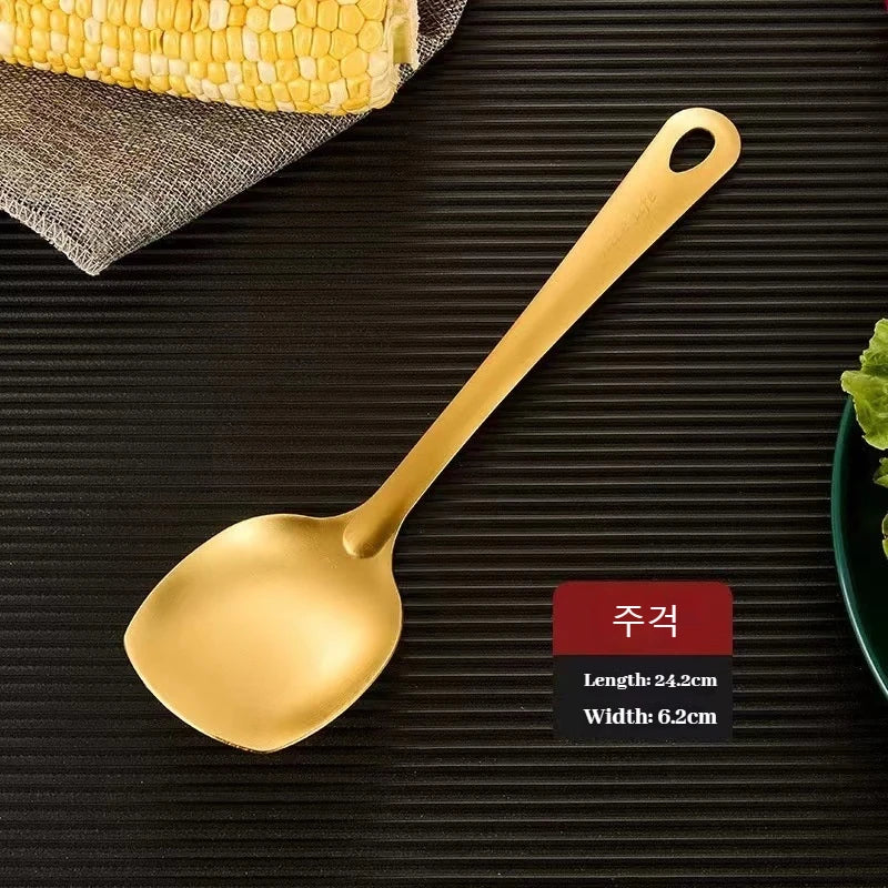 طقم أدوات مائدة من الفولاذ المقاوم للصدأ مكون من 6 قطع، أدوات مائدة كورية مبتكرة، ملعقة ذهبية، طقم أدوات مائدة على الطراز الكوري، طقم أدوات مطبخ