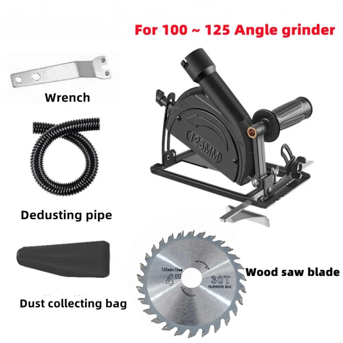 2. المجموعة ب (شفرة منشار واحدة): حامل جلاخة زاوية واحد + مفتاح ربط واحد + أنبوب إزالة الغبار واحد + كيس تجميع الغبار واحد + شفرة منشار خشب واحدة.