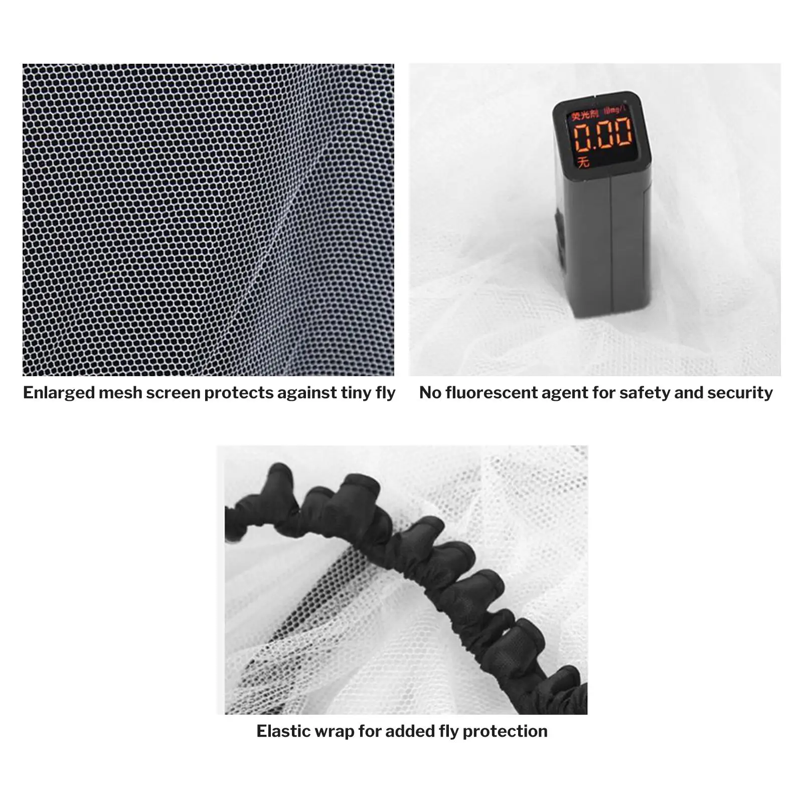 3. حواف معززة بخياطة مزدوجة: صُنعت بدقة متناهية، باستخدام حواف معززة بخياطة مزدوجة وحاجز شبكي عالي الكثافة، لتوفير حاجز مادي موثوق به ومقاوم للذباب، مما يوفر حماية آمنة للأطفال الصغار، مع مرونة إضافية لراحة الاستخدام اليومي.