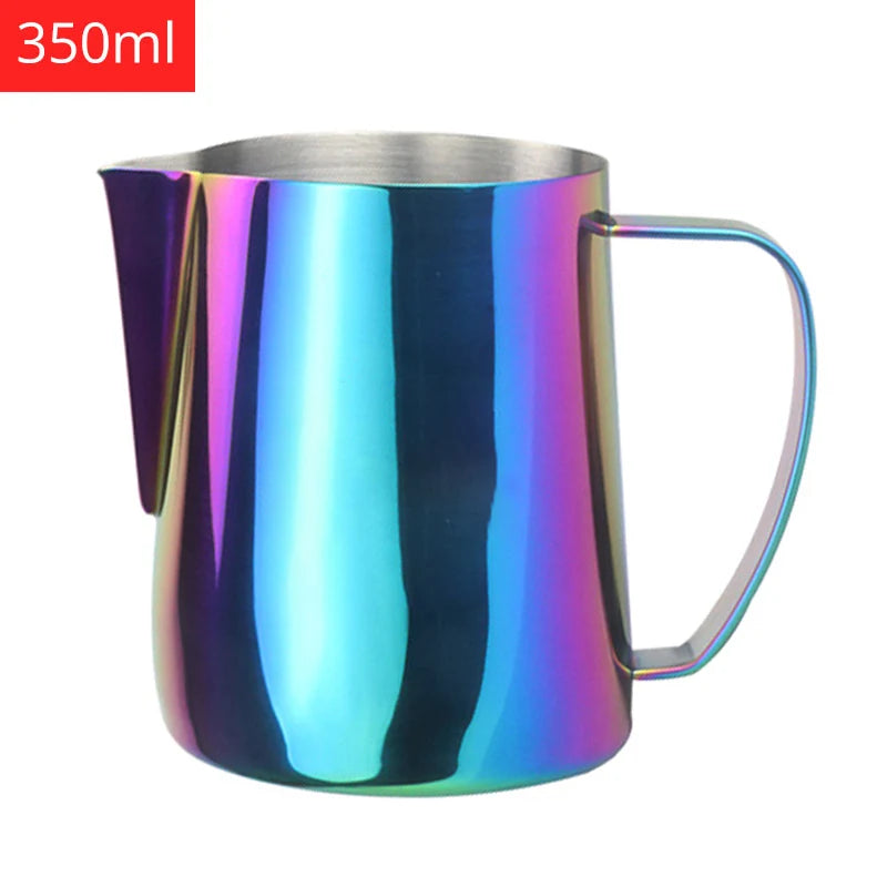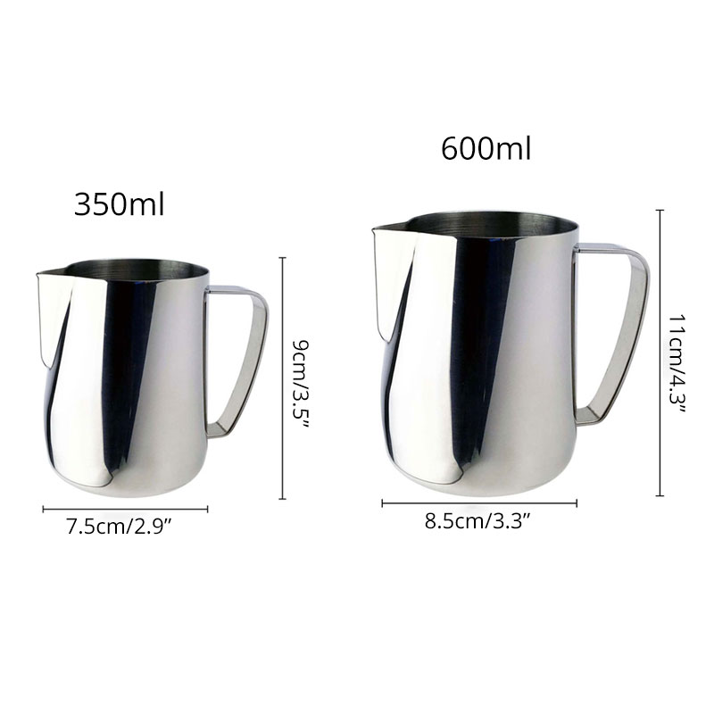 إبريق رغوة عالي الجودة. مصنوع من الفولاذ المقاوم للصدأ عالي الجودة، صحي وآمن، وسهل التنظيف للغاية. لن يلتصق الحليب أو القهوة بالكوب أثناء الرغوة أو التبخير.