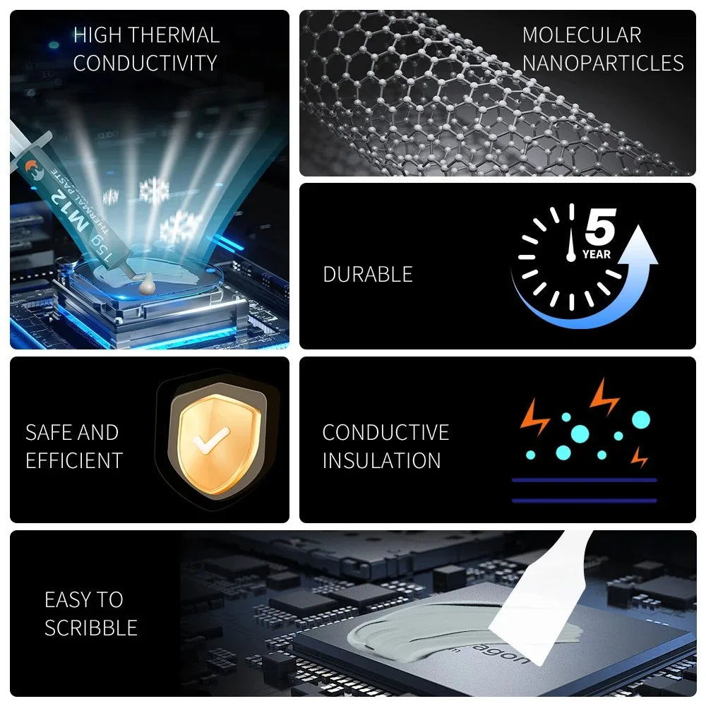 معجون حراري عالي الأداء من كول سيرك، موصل حرارياً، 12.4 واط/متر مكعب، متوفر بأحجام 1/4/8/15/30 غرام، مناسب لأجهزة الكمبيوتر المخصصة للألعاب، وأجهزة بلاي ستيشن 5، ووحدات المعالجة المركزية ووحدات معالجة الرسومات.