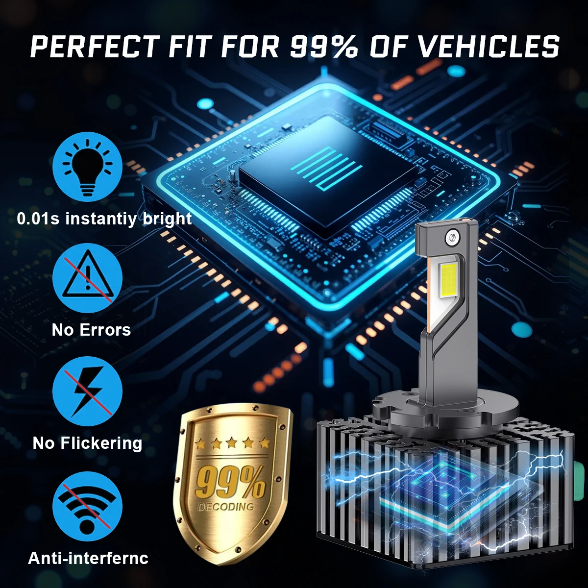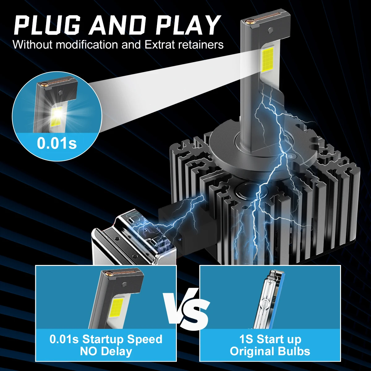 لا يحتاج إلى مُحَوِّل، ويُعطي نفس نقطة الإضاءة الأصلية لمصابيح زينون HID الأمامية، ما عليك سوى التوصيل والتشغيل، استبدل مصابيح الزينون الأصلية مباشرةً، ويعمل مع مُحَوِّل السيارة الأصلي.