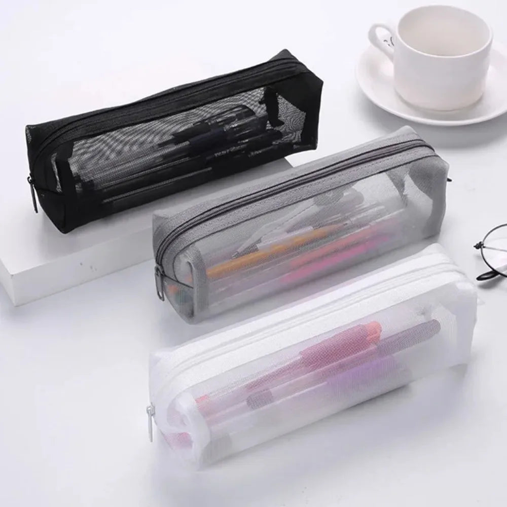 حافظ على تنظيم أدواتك مع هذه المقلمة الشبكية ، وهي حقيبة شفافة تساعدك على رؤية وتخزين الأقلام والممحاة والقرطاسية بسهولة. مثالية للطلاب أو موظفي المكاتب الذين يفضلون التنظيم البسيط والأنيق.