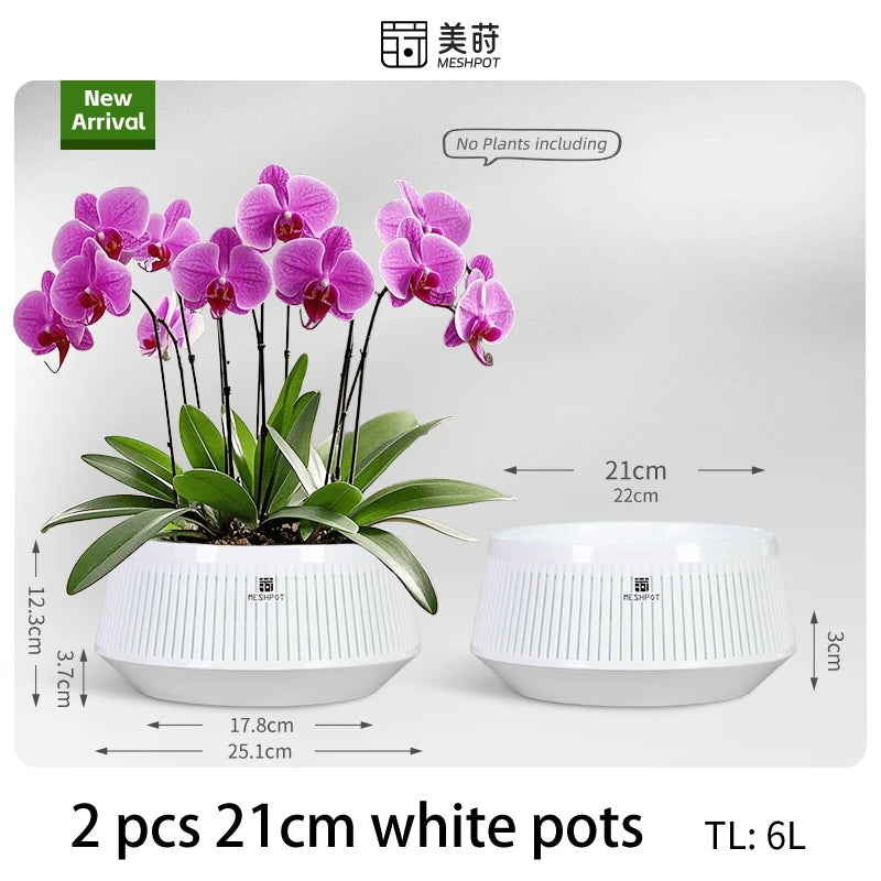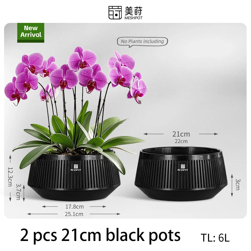 21 سم: يتسع لـ 4-5 نباتات/أوركيد. إذا كنت ترغب في جمع نباتات الفالاينوبسيس، فقم بدمج النباتات معًا. سيكون 21 سم خيارًا جيدًا.