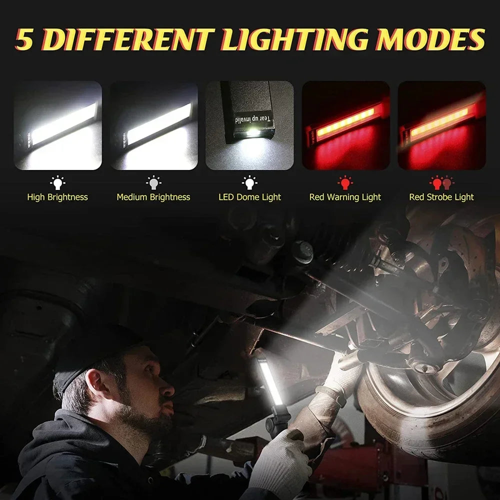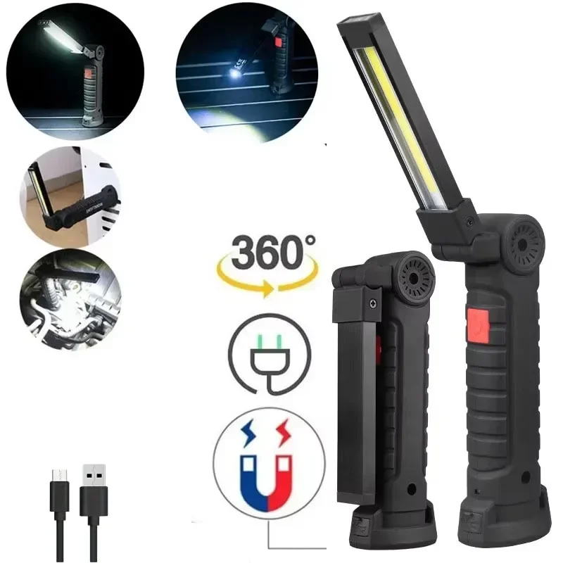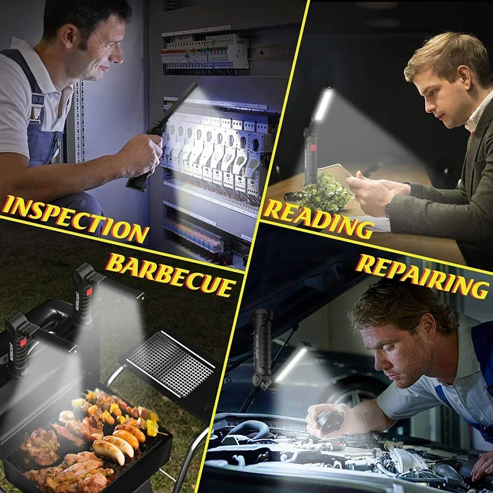 مصباح يدوي LED عالي الطاقة قابل لإعادة الشحن عبر منفذ USB، مصباح عمل تخييم محمول مزود بقاعدة مغناطيسية للإضاءة الطارئة