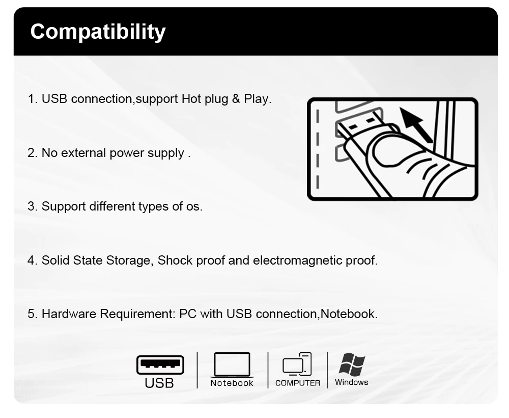 عادة ما يتم شحن منتجات ذاكرة الفلاش ذات السعة المحددة وفقًا لمعيار الحوسبة 1 ميجابايت = 1000 كيلوبايت، 1 جيجابايت = 1000 ميجابايت، ولكن نظام التشغيل يستخدم الحساب الثنائي 1 ميجابايت = 1024 كيلوبايت، 1 جيجابايت = 1024 ميجابايت، لذلك هناك بعض الاختلافات بين سعة العرض ومنتجات الذاكرة ذات السعة القياسية.
