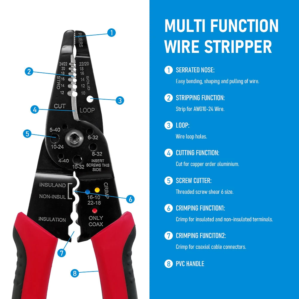 كماشة تعرية الأسلاك، قاطع أسلاك الشبكة، أداة تجعيد أسلاك الكابلات، أدوات إصلاح كهربائية، أداة تعرية الأسلاك، أدوات يدوية