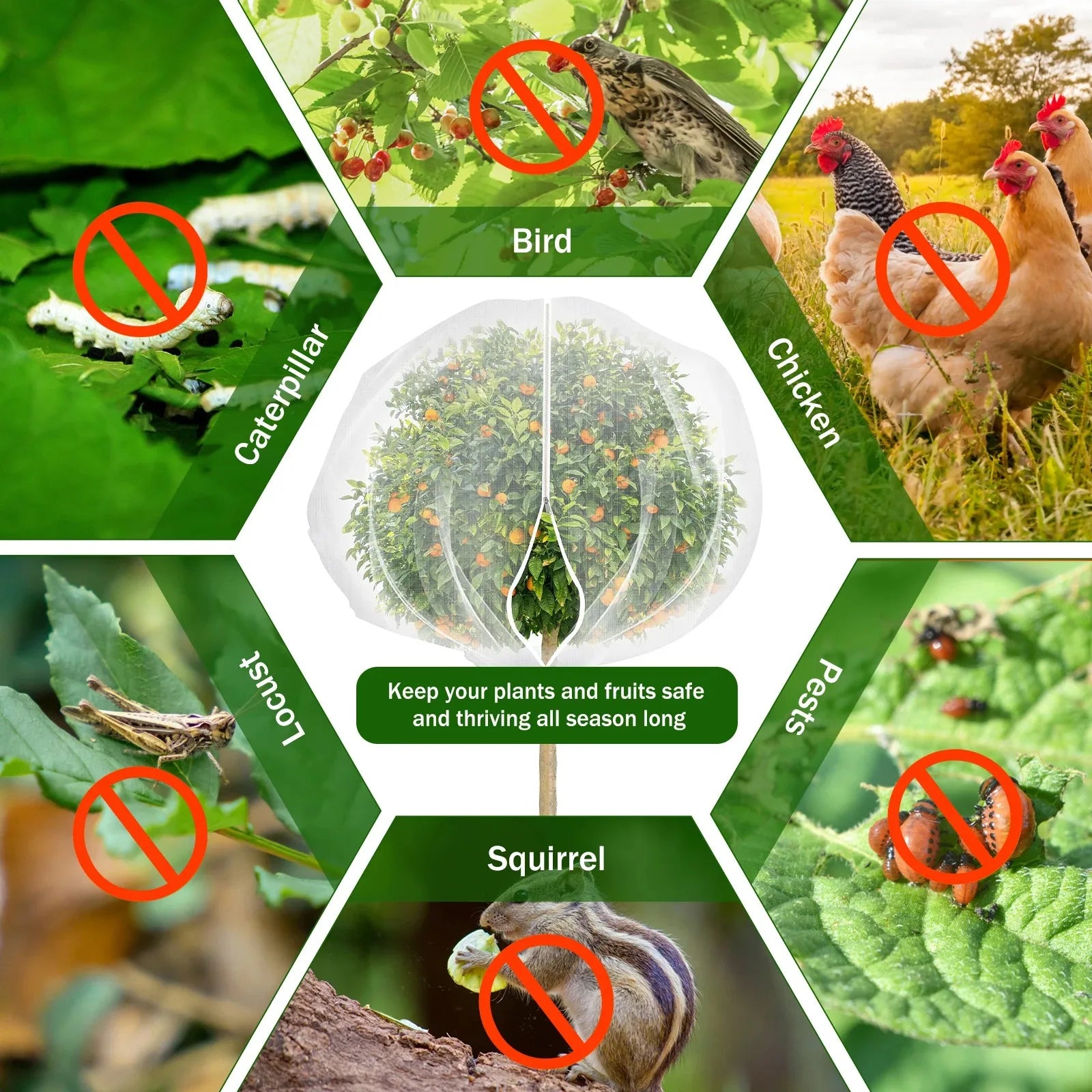 [Ease of Use] Say goodbye to the hassle of packing each fruit individually. Simply attach the plant bird netting to the plant, tighten the drawstring, and close the zipper.