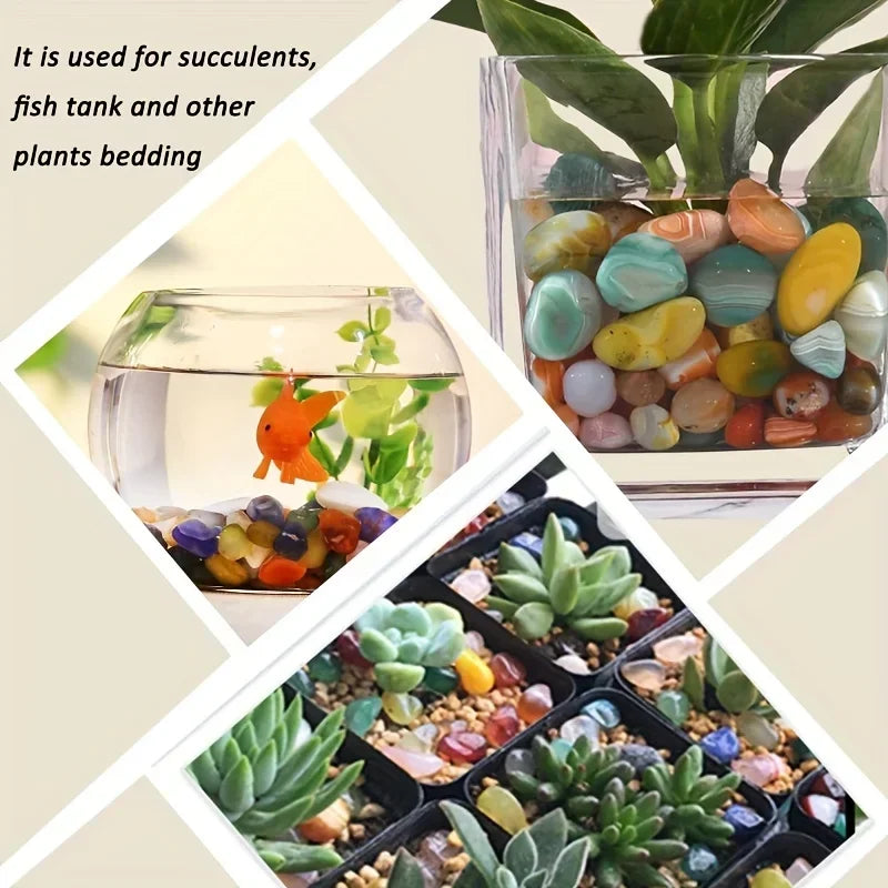 Each bag contains a unique assortment of natural stones in various shapes and colors, making every set one of a kind. Display in bowls, jars, or scatter along plant beds for natural charm.