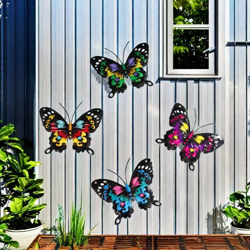 4pcs/set Iron Metal Butterfly Wall Art for Outdoor Fence Garden Hanging Decor Rustproof Iron Craft Home Decoration