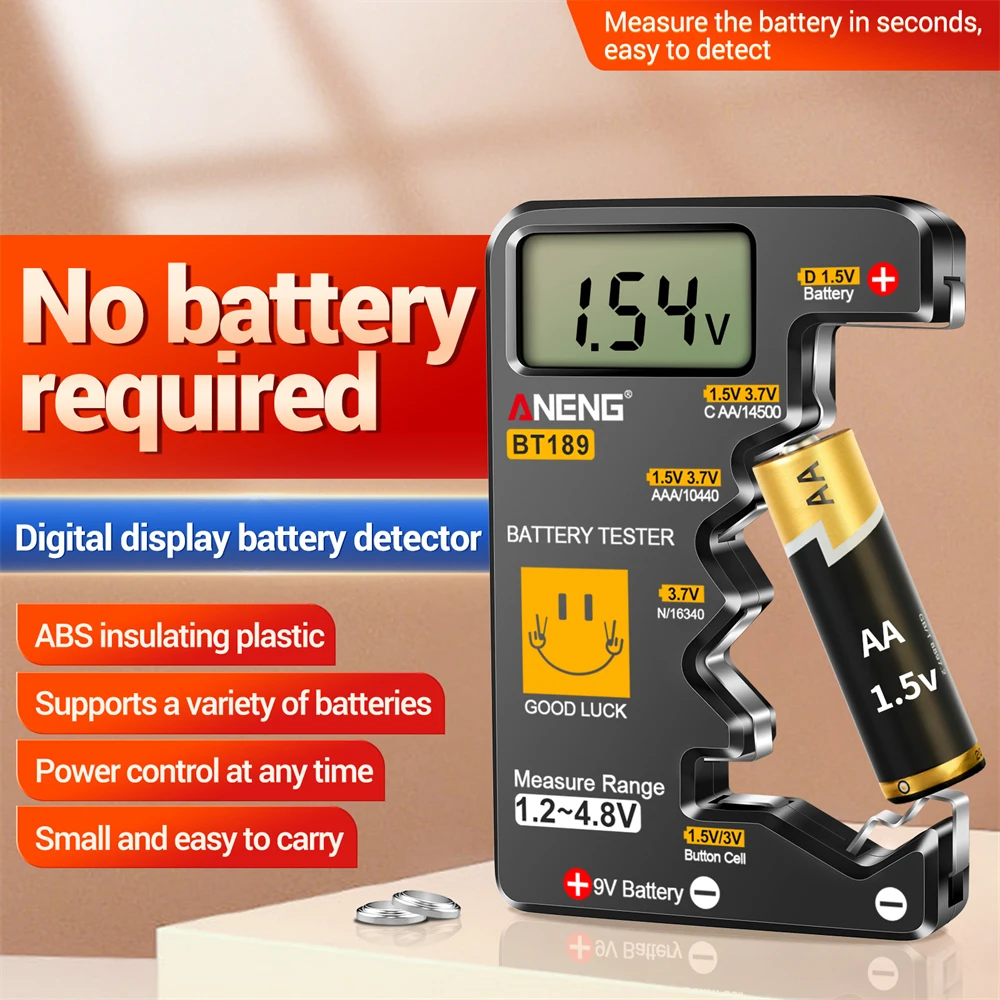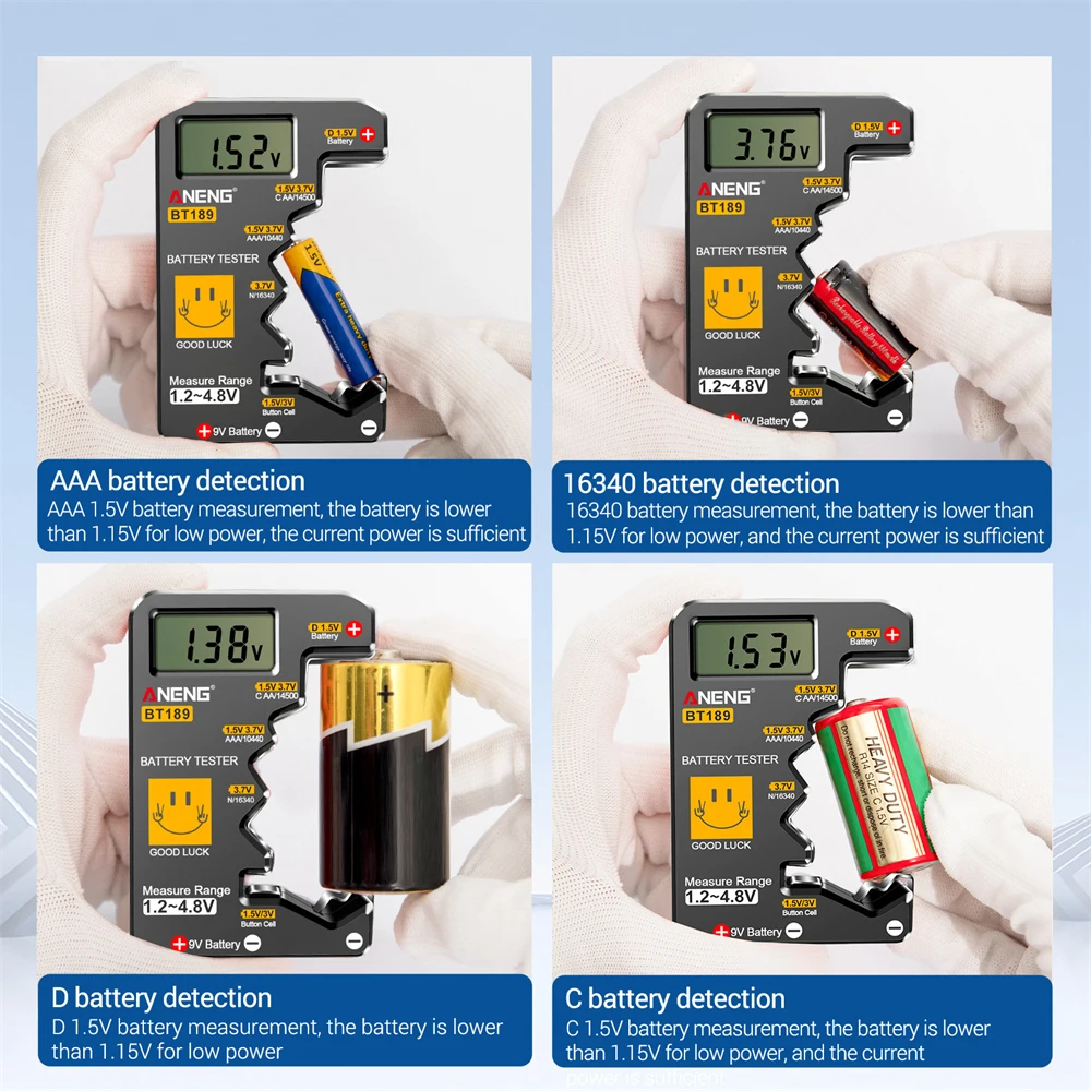 ANENG BT189 Battery Tester 9V AAAAA Button Cell Universal Household LCD Digital Display Battery Tester Power Bank Detector