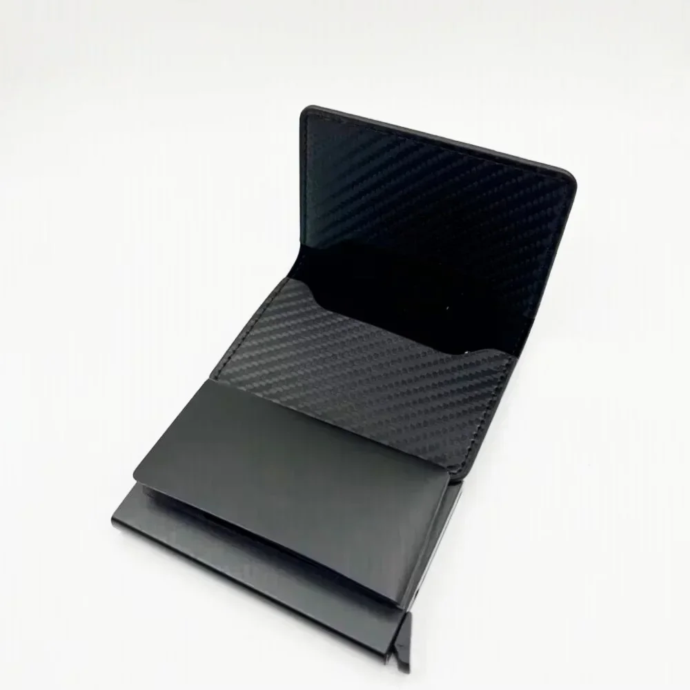 Fashion Carbon Fiber Anti-theft Credit Card Package Metal Cards Box Men Wallet Holder PU Purse