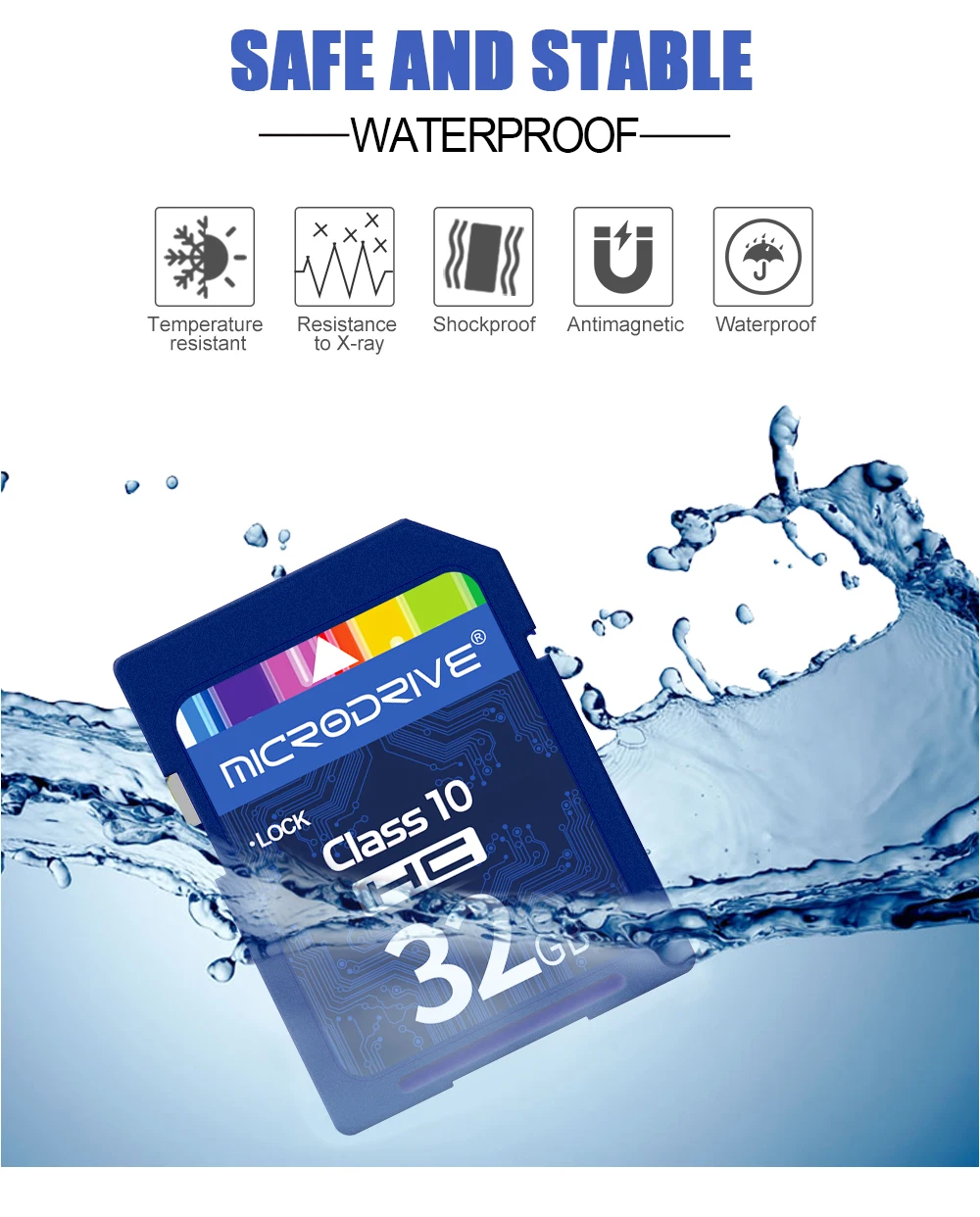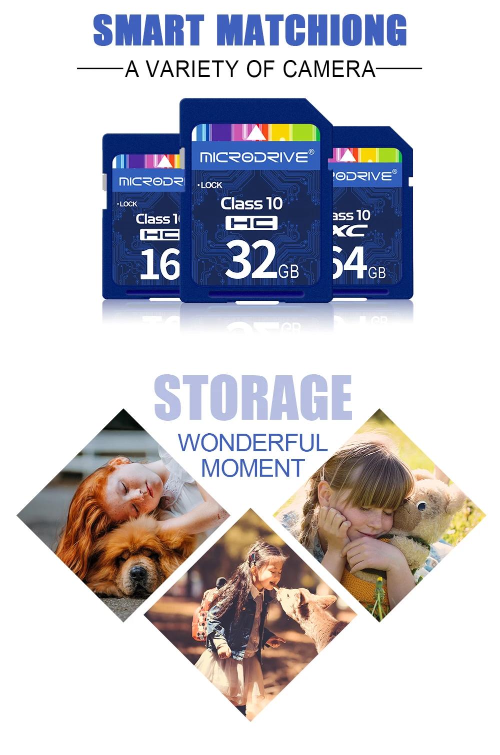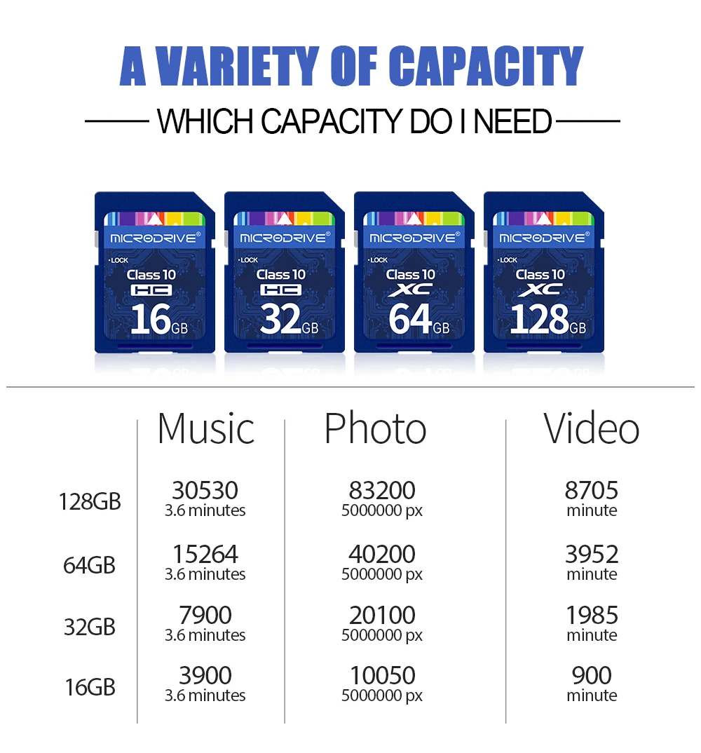 • Class 10 U1 (16GB, 32GB) and U3 (64GB and above) speeds for fast data transfer