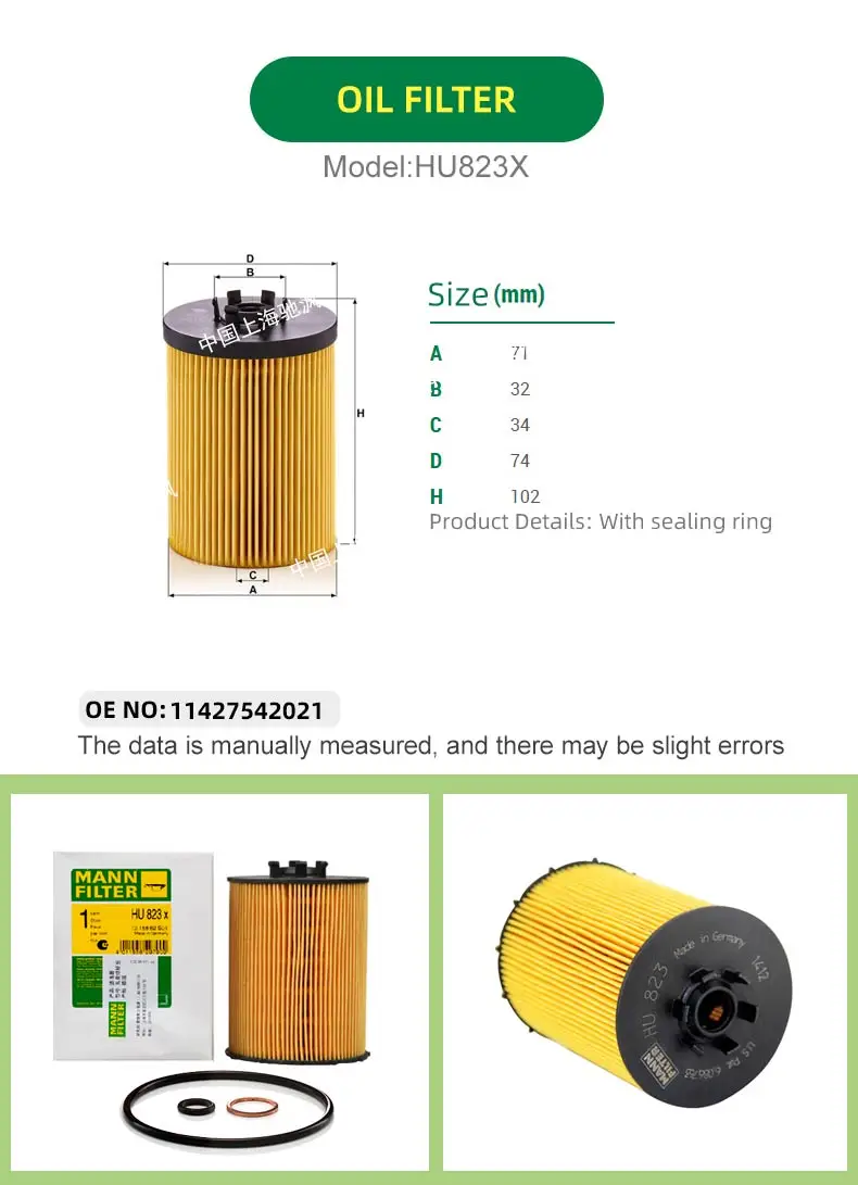 MANNFILTER HU823X Oil filter For BMW 550 650 740 750 760 X5 E70 N62 N73 11427542021