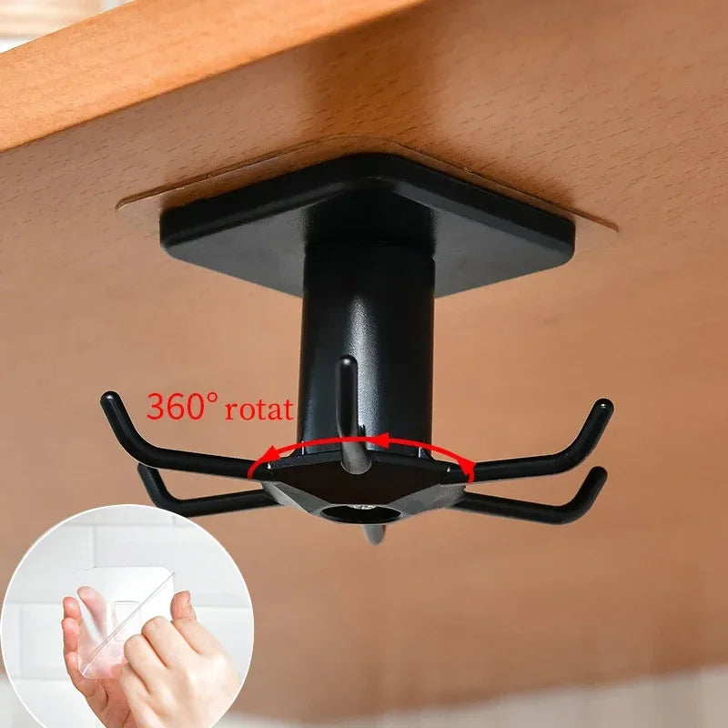 Save space and organize your kitchen effortlessly with this rotating kitchen hooks storage rack featuring a punch-free, wall-mounted design. Made from durable ABS material, this compact rack installs easily using strong adhesive tape—no drilling or tools needed. Perfect for hanging utensils, towels, and other kitchen essentials, its modern black finish adds style while maximizing your kitchen’s storage capacity.