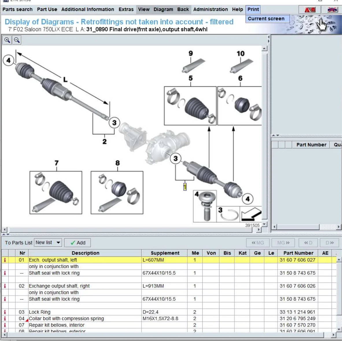 Suitable for BMW F07 GT 550iX F01 LCI F02 750LiX output shaft, left 31607606027 drive shaft 31607593039 half shaft
