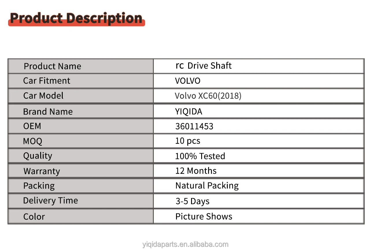 YIQIDA 36011453 OEM Axle Shaft Right Exch Front Drive-cv Half Shaft Axle ASSY For Volvo V60 V90 CROSS COUNTRY XC60 XC90 Parts